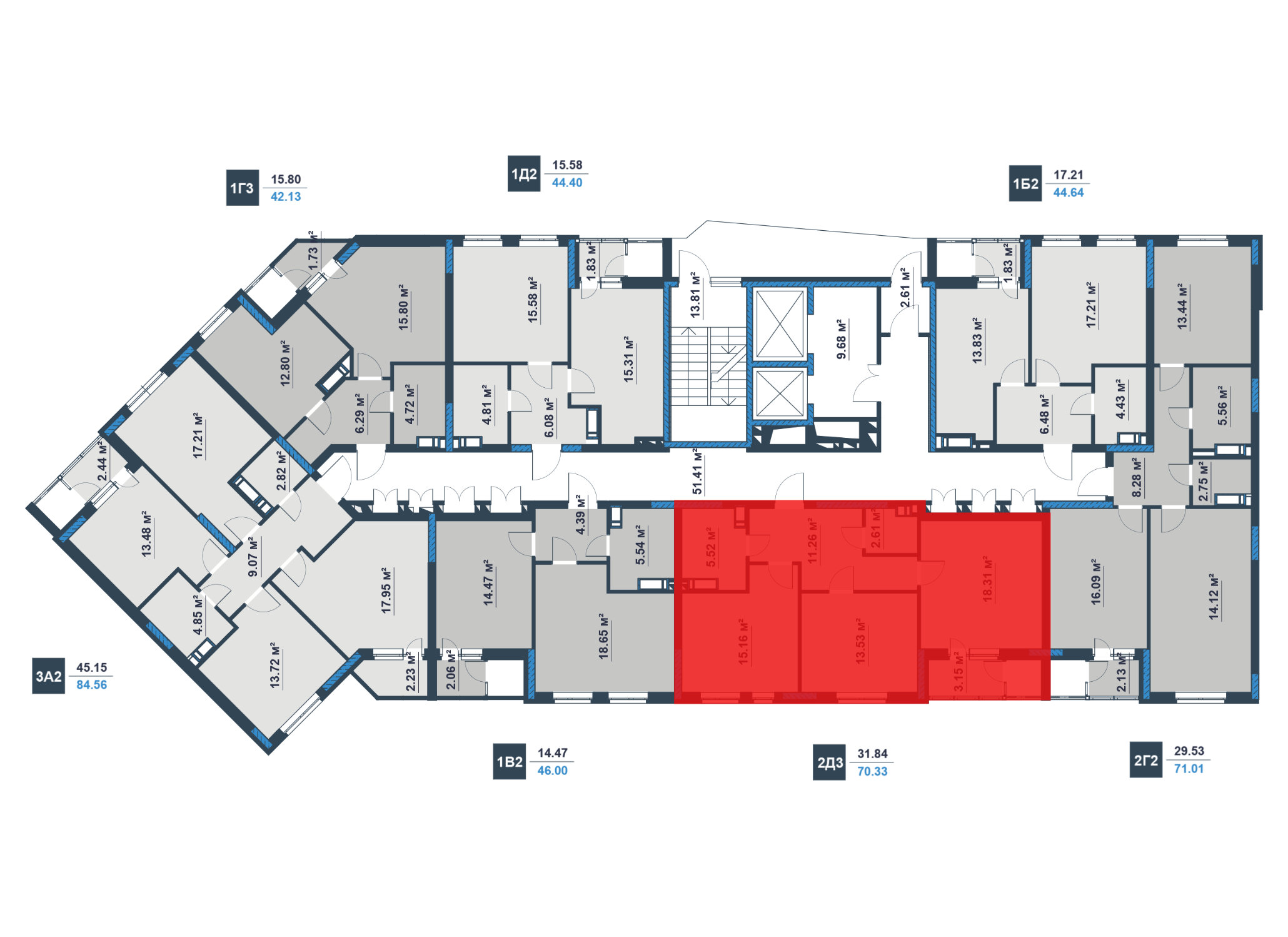 Двухкомнатная квартира 2А13